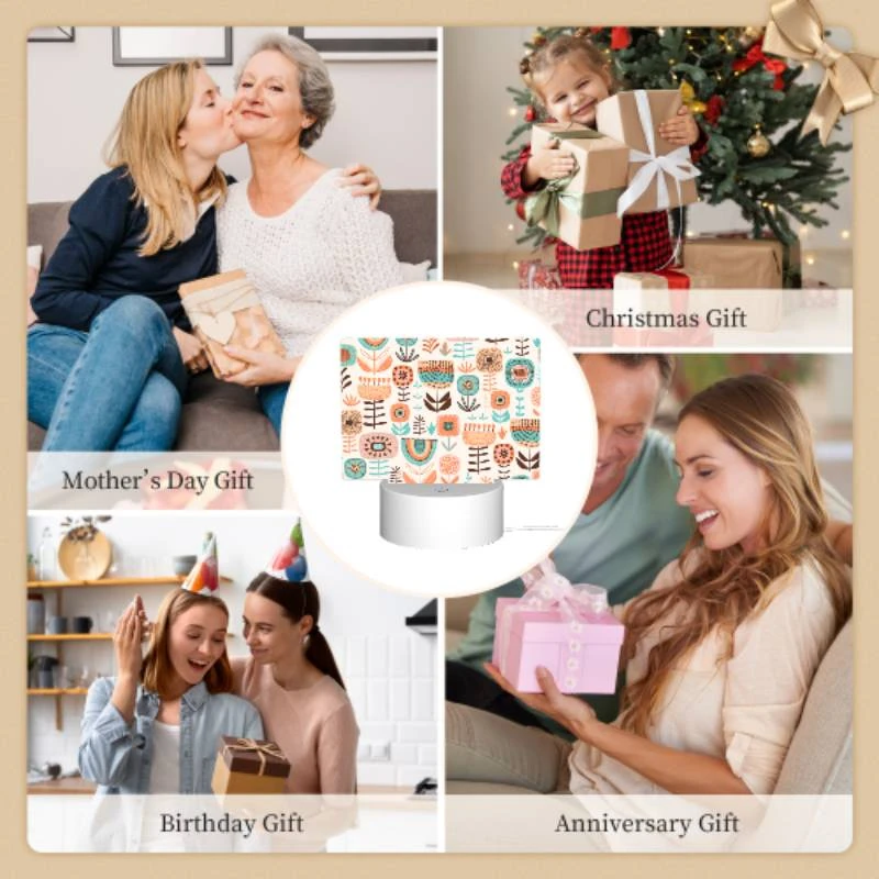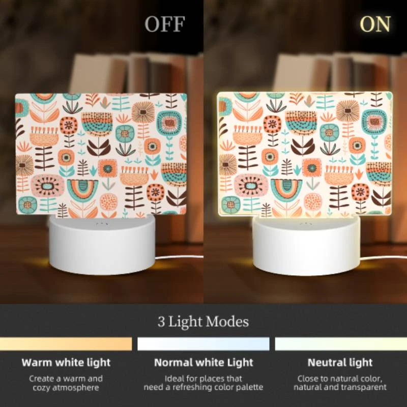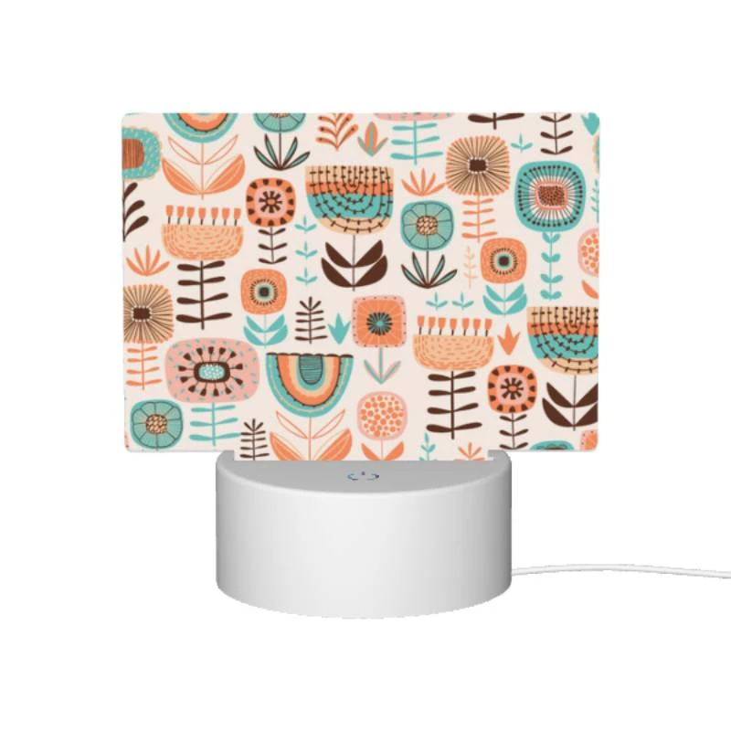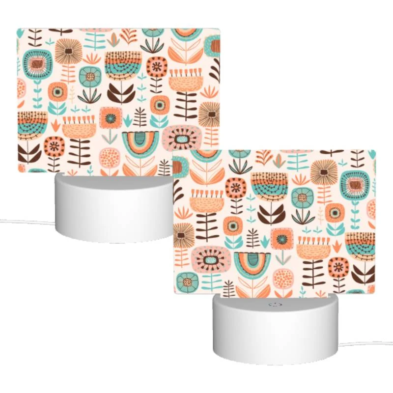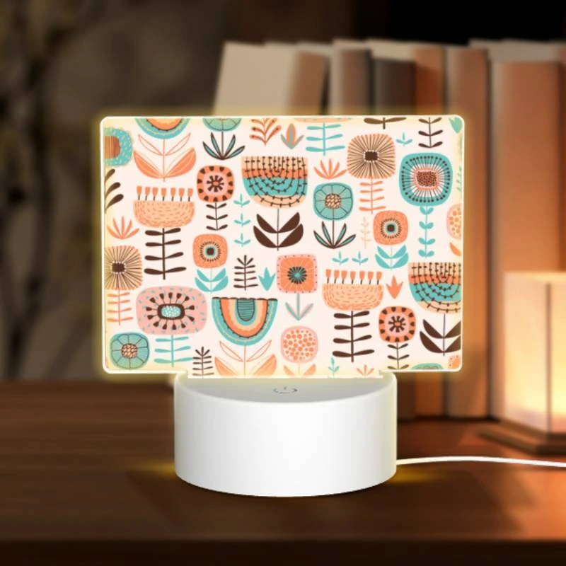Rectangular Acrylic Night Light, A Colorful Floral Pattern With Orange