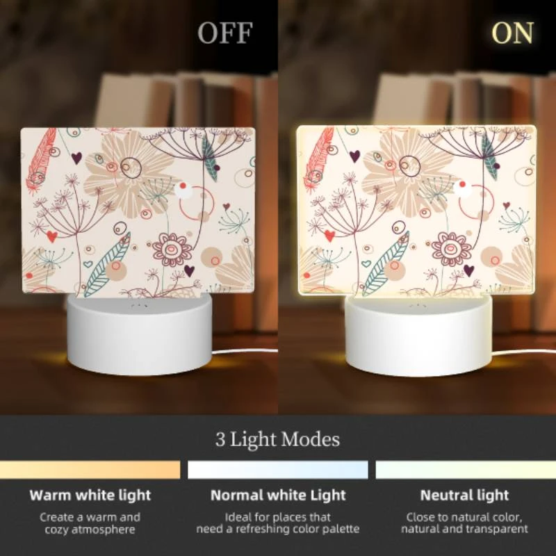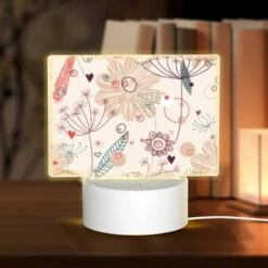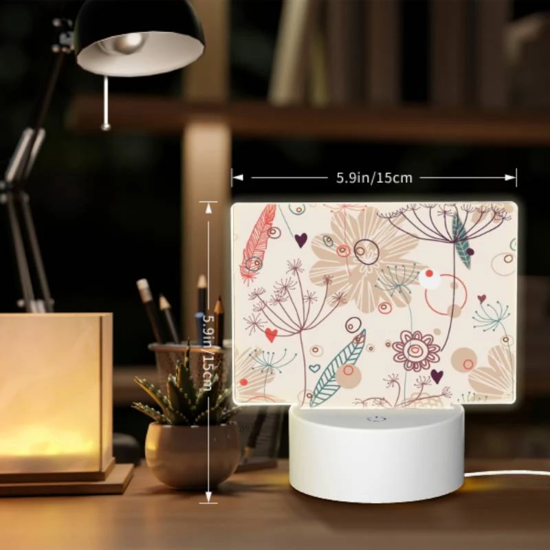 Rectangular Acrylic Night Light, A Colorful Flower Pattern With Hearts And Circles.