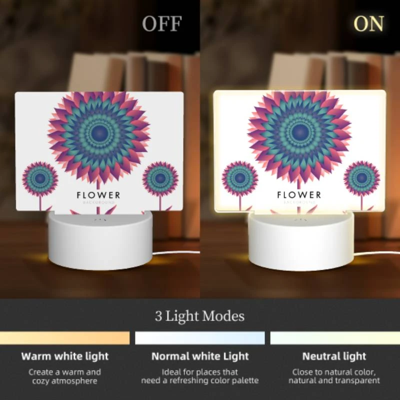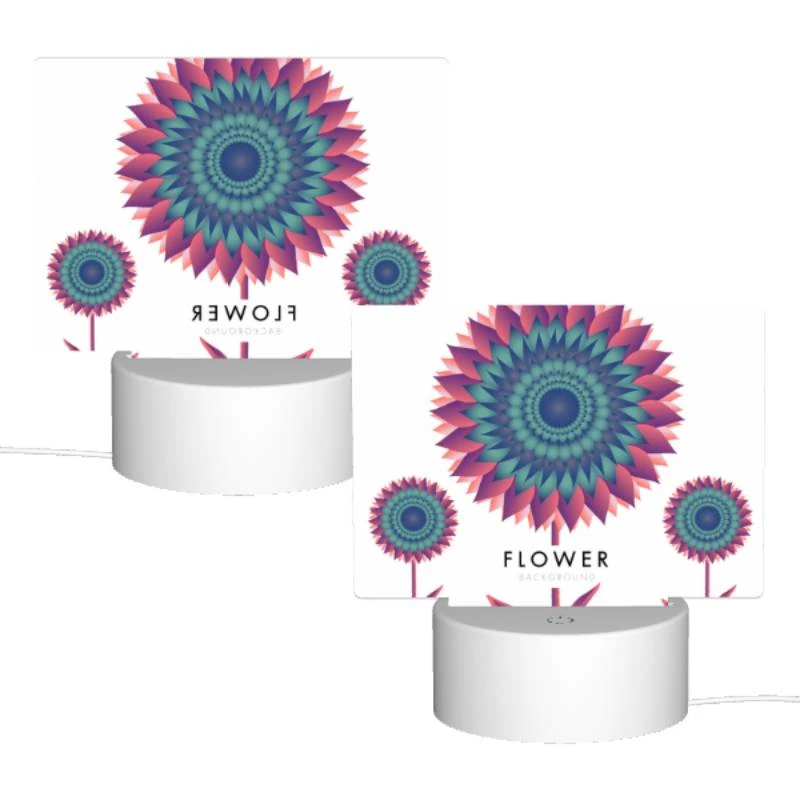 Rectangular Acrylic Night Light, A Colorful Flower With A Purple Background.