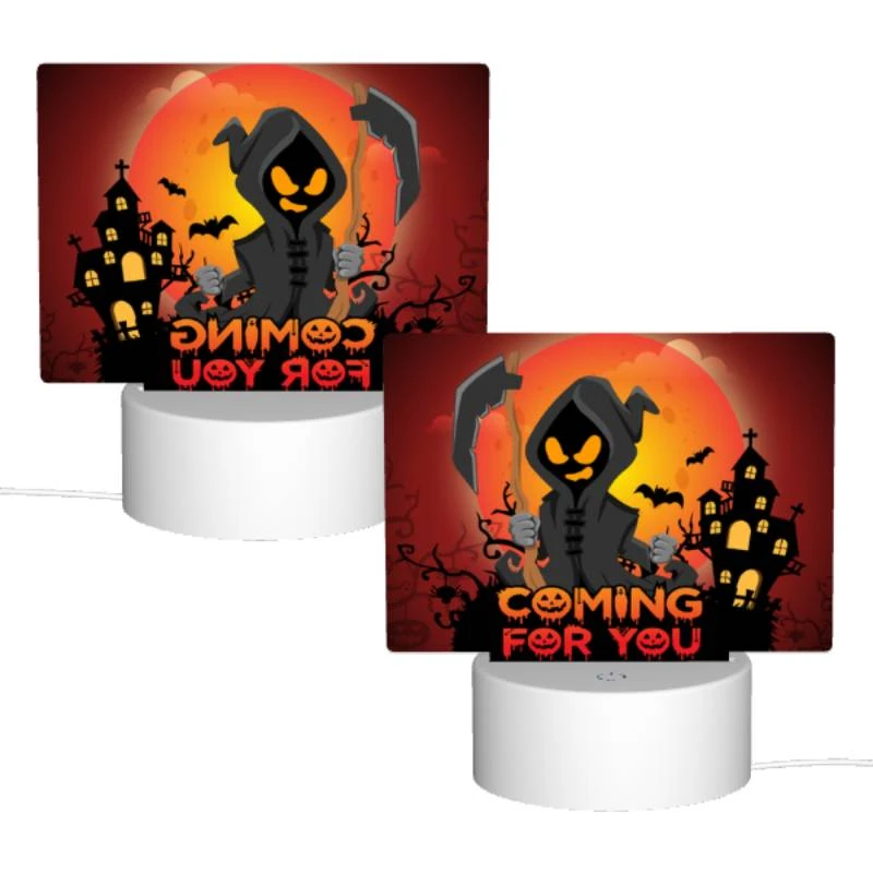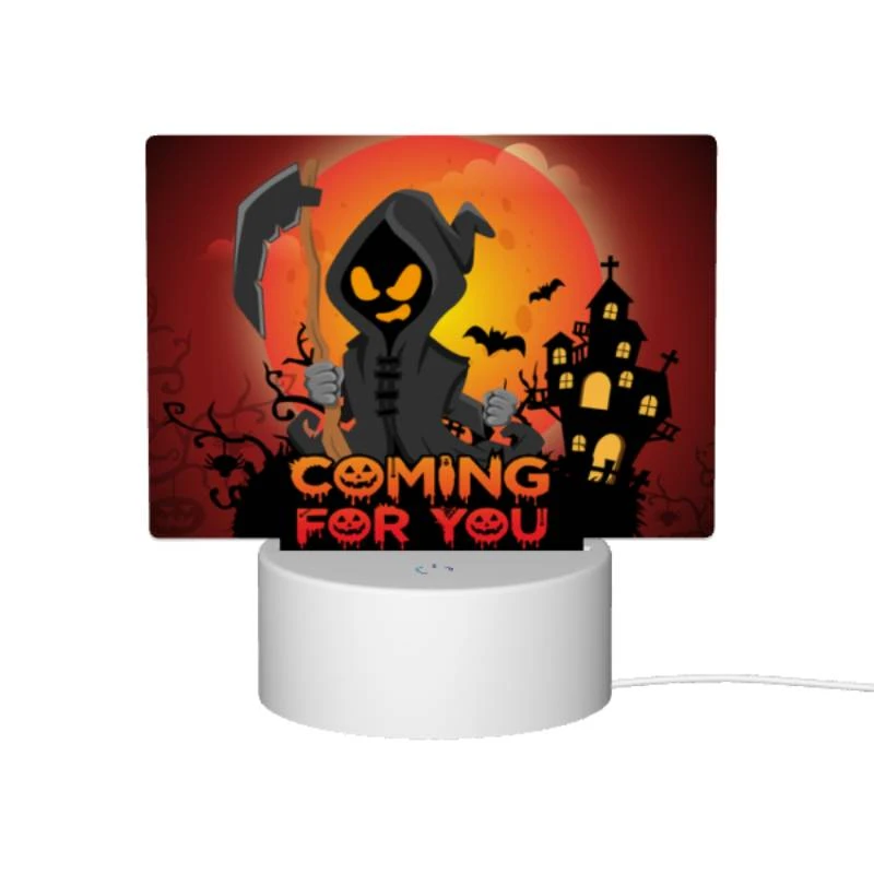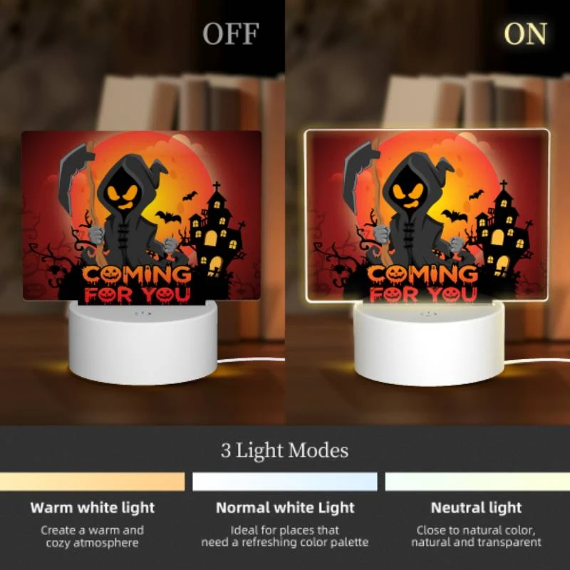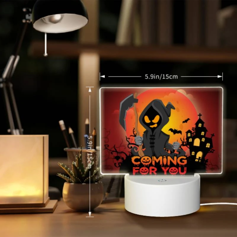 Rectangular Acrylic Night Light, A Halloween Themed Poster With A Skeleton Holding A Scythe.