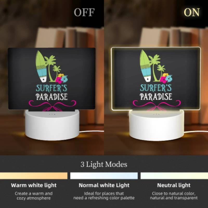 Rectangular Acrylic Night Light, A Logo For Surfer’s Paradise.