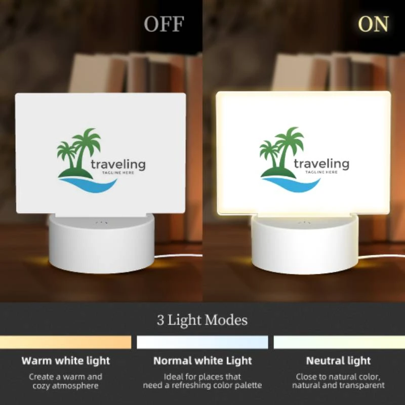 Be the first to review “Rectangular Acrylic Night Light, A Logo For Traveling With A Palm Tree And The Words “tagline Here”.” Cancel reply