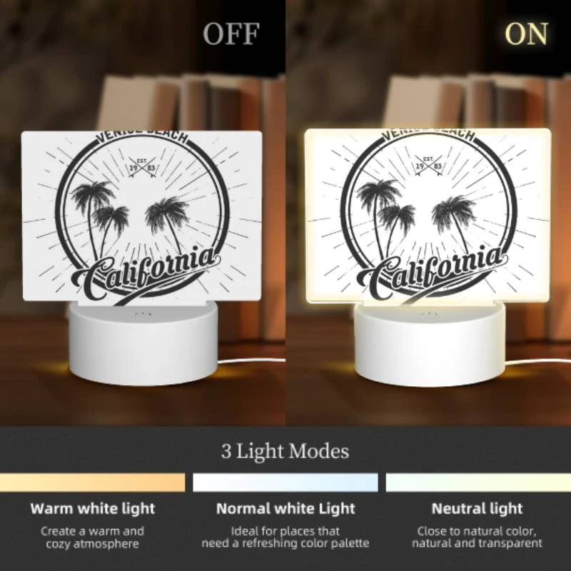 Rectangular Acrylic Night Light, A Logo For Venice Beach California.