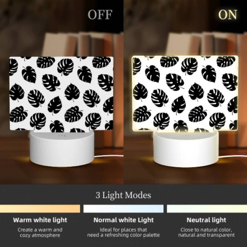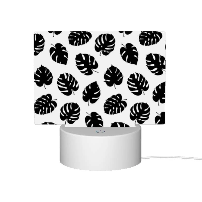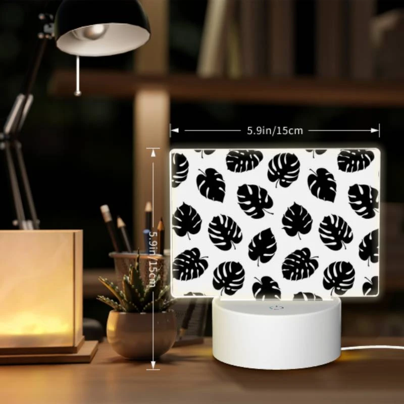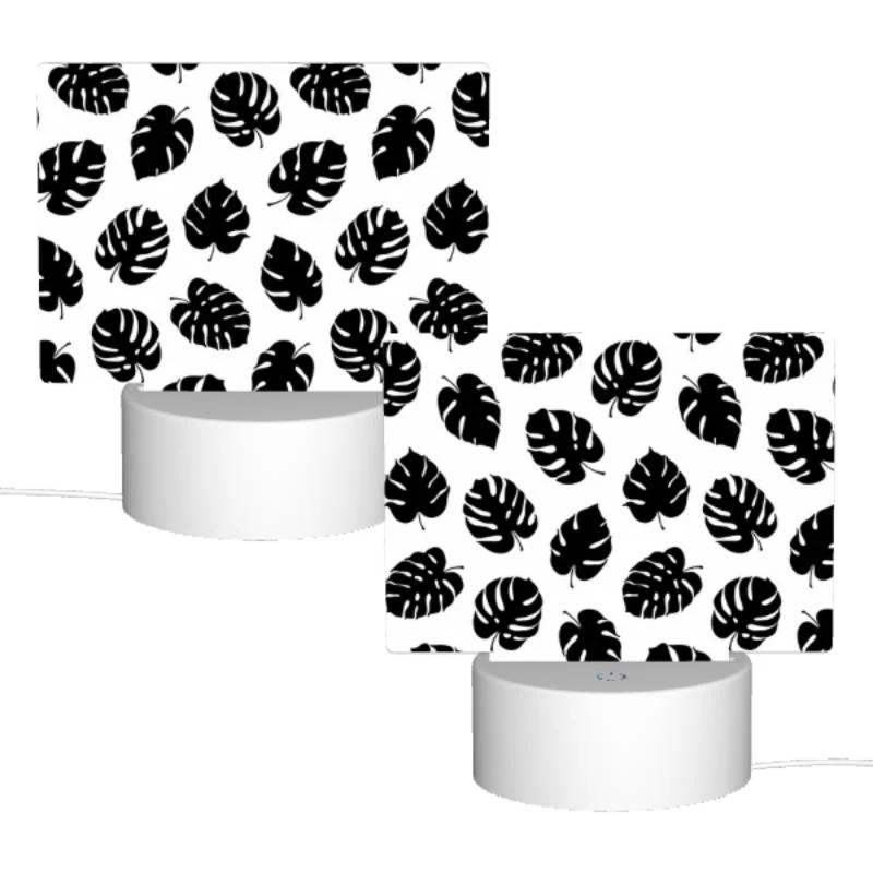 Rectangular Acrylic Night Light, A Pattern Of Leaves On A Black And White Background.