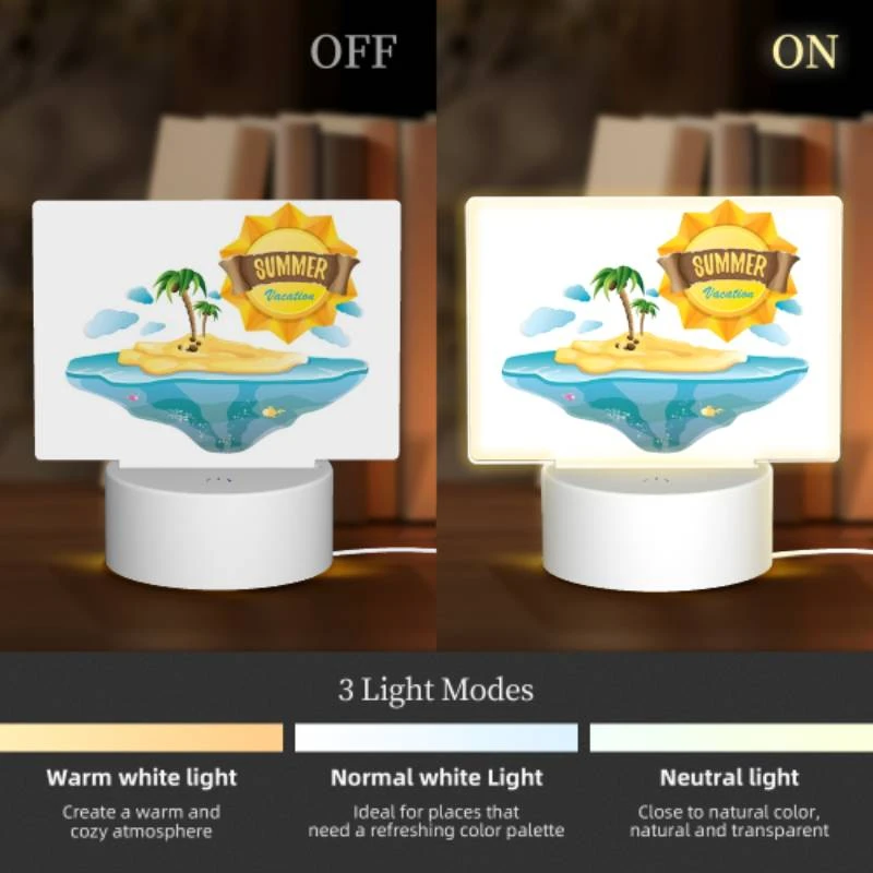Rectangular Acrylic Night Light, A Sunny Island With A Palm Tree And A Yellow Sun.