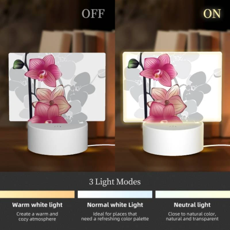[Product Performance] The night light is composed of an acrylic light board and a plastic base. The night light has 3 light options (white light, warm light, warm white light). Touch to switch the light mode, which is soft and not dazzling, harmless to the eyes, and accompanies you into sweet dreams every night, creating a comfortable sleeping environment.