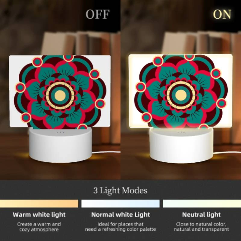 [Product Performance] The night light is composed of an acrylic light board and a plastic base. The night light has 3 light options (white light, warm light, warm white light). Touch to switch the light mode, which is soft and not dazzling, harmless to the eyes, and accompanies you into sweet dreams every night, creating a comfortable sleeping environment.