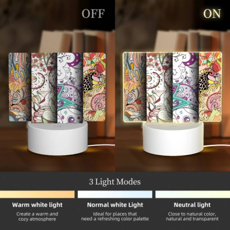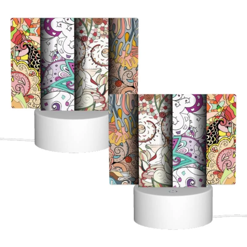 Rectangular Acrylic Night Light, Four Different Colored Paintings Of Swirls And Designs.