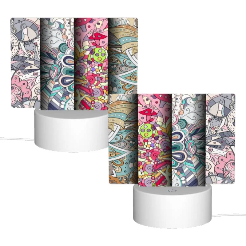 Rectangular Acrylic Night Light, Three Colorful Artworks Are Displayed Side By Side.