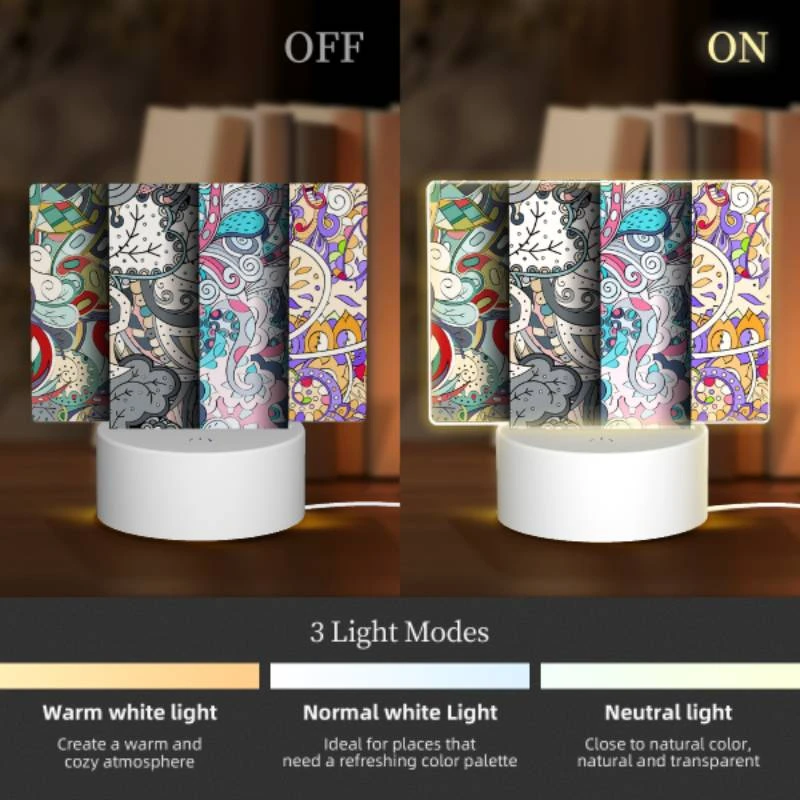 Rectangular Acrylic Night Light, Three Colorful Artworks Are Displayed Side By Side.
