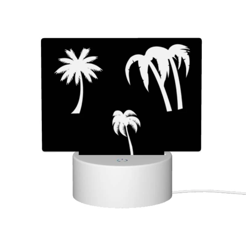 Rectangular Acrylic Night Light, Three Palm Trees Are Shown In Silhouette Against A Black Background.