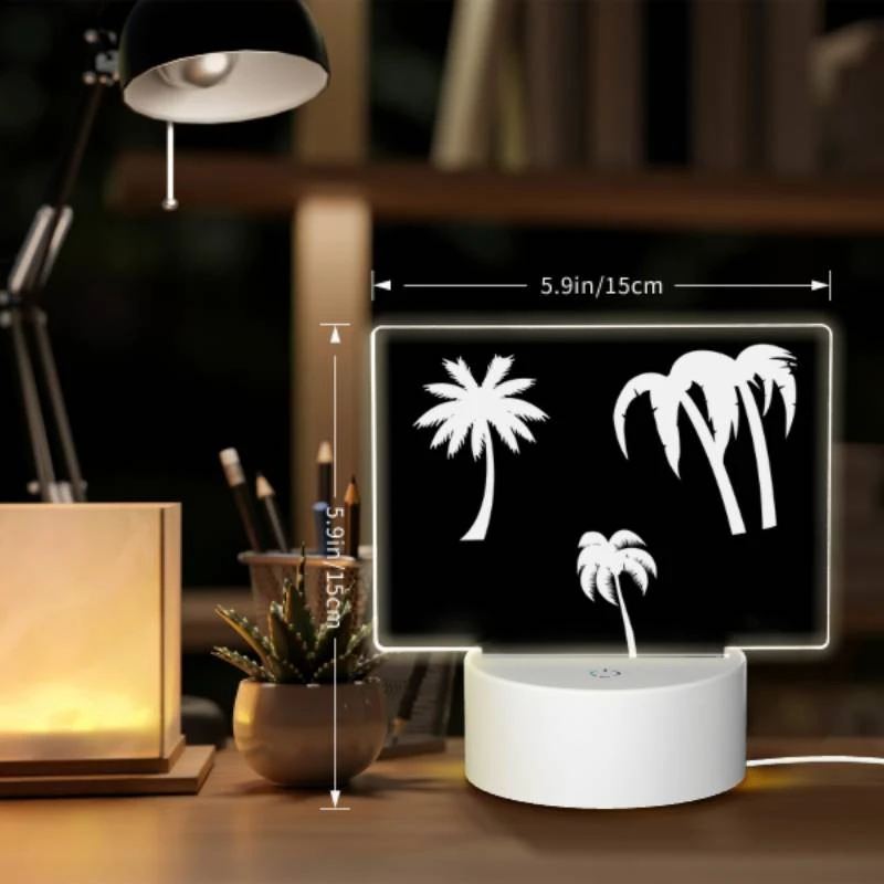 Be the first to review “Rectangular Acrylic Night Light, Three Palm Trees Are Shown In Silhouette Against A Black Background.” Cancel reply