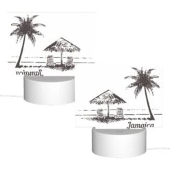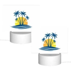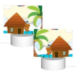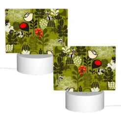 Rectangular Acrylic Night Light, A Black And White Image Of A Bird Flying In Front Of A Yellow Flag.
