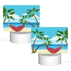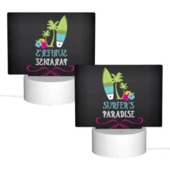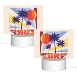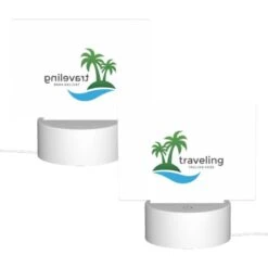 Rectangular Acrylic Night Light, A Logo For Traveling With A Palm Tree And The Words “tagline Here”.