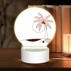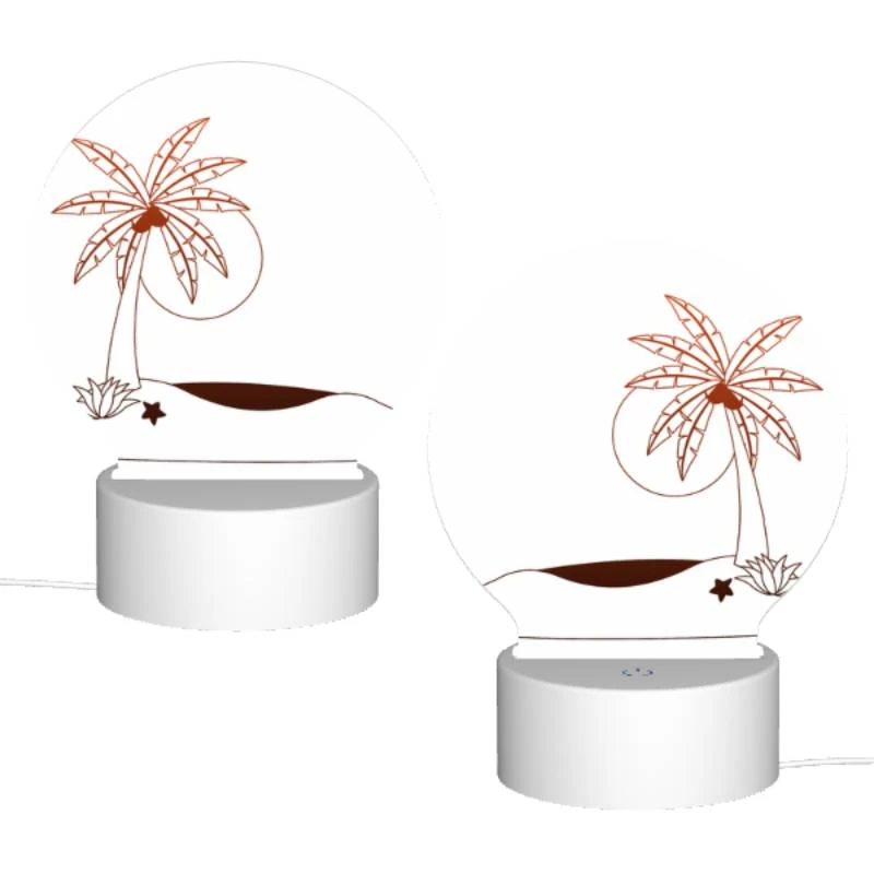 Round Acrylic Night Light, A Brown And White Palm Tree On A White Sandy Beach.
