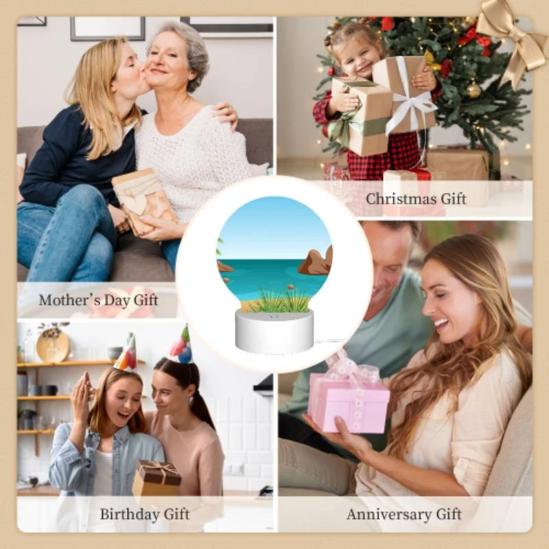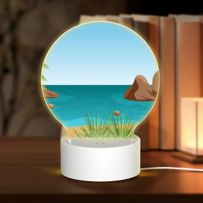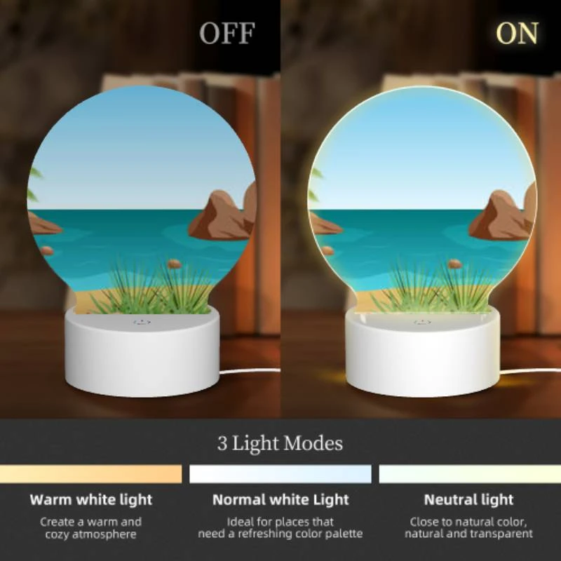 Round Acrylic Night Light, A Cartoon Beach Scene With A Palm Tree