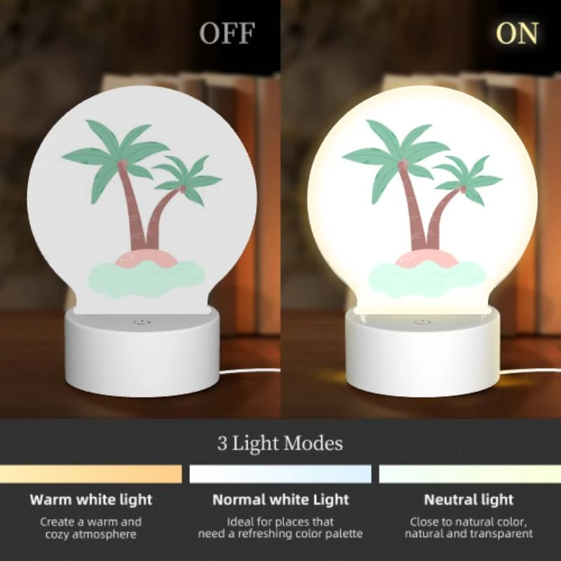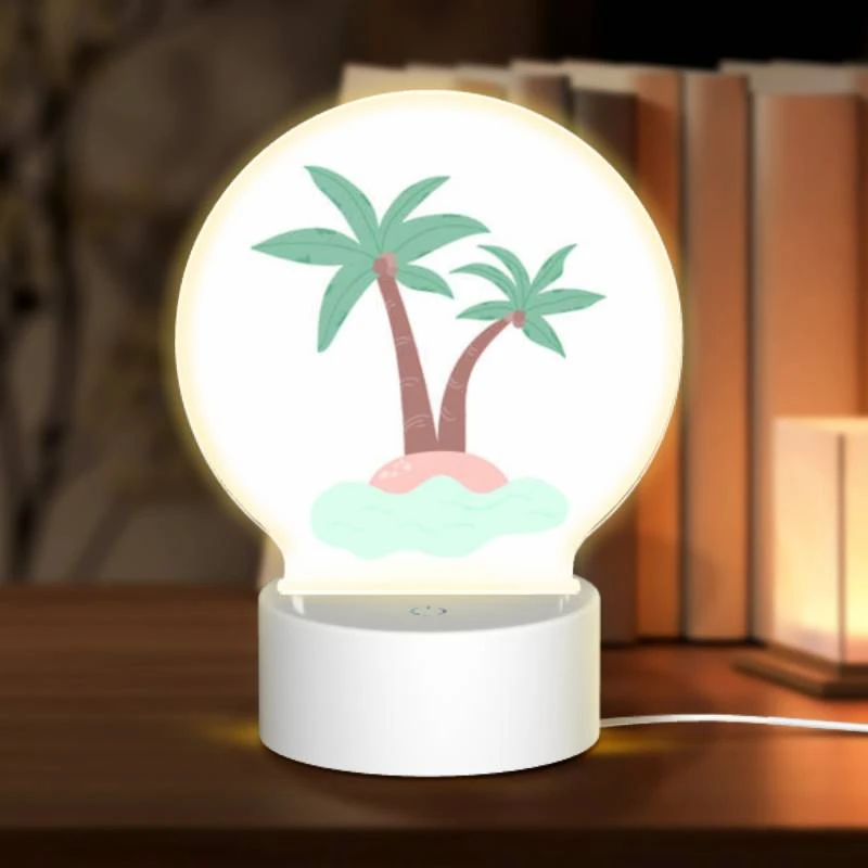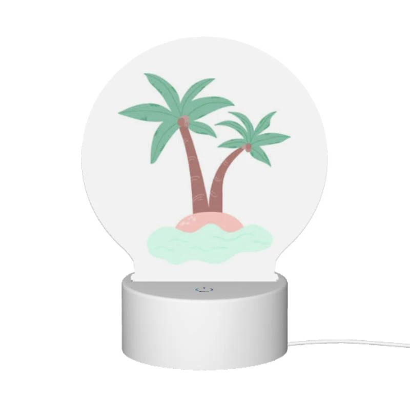Round Acrylic Night Light, A Cartoon Image Of A Palm Tree On A Small Island.
