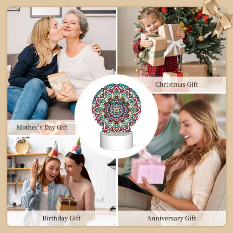 Round Acrylic Night Light, A Colorful Circle Of Flowers And Birds.