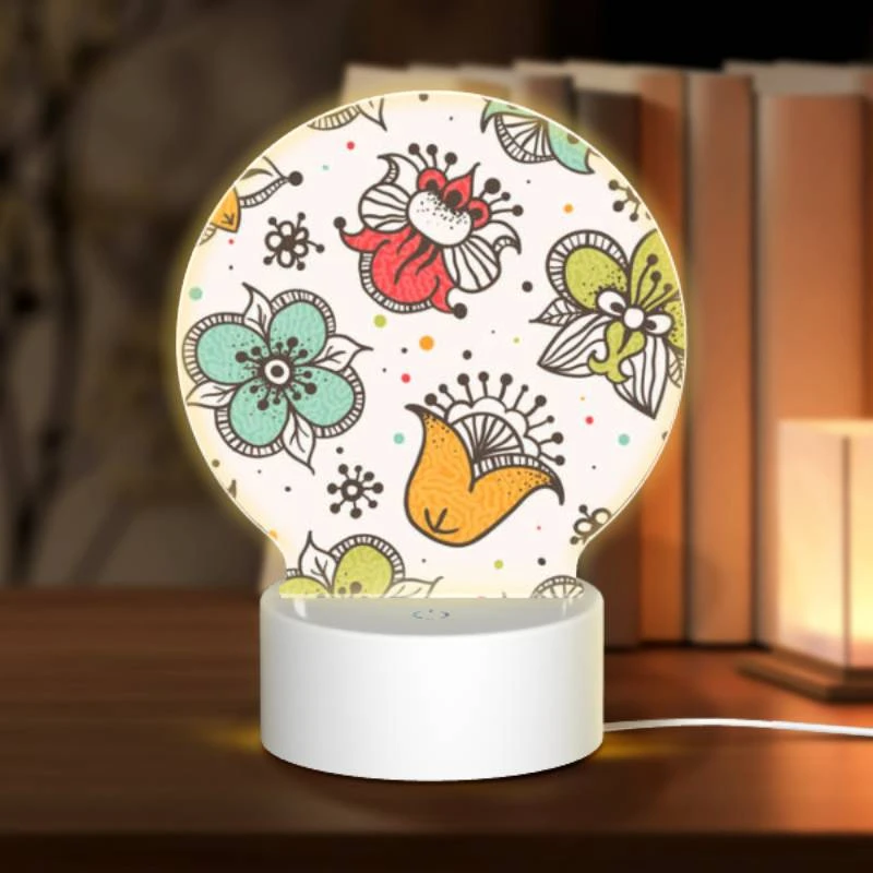 Round Acrylic Night Light, A Colorful Circle Of Flowers And Birds.