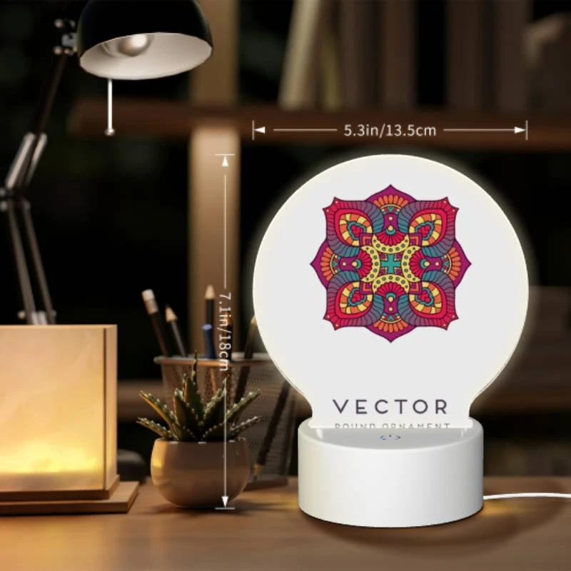 Round Acrylic Night Light, A Colorful Round Ornament With A Design On It. -Cute Night Light Shop cacac47e3cbec5726eee7e1285f48bedf1d35880