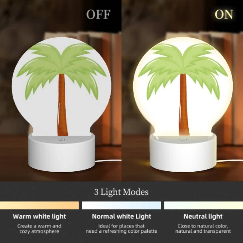 Round Acrylic Night Light, A Green And Brown Palm Tree. -Cute Night Light Shop aac3495fa24655ab004f4fecd5038ba2ea7068ff 48