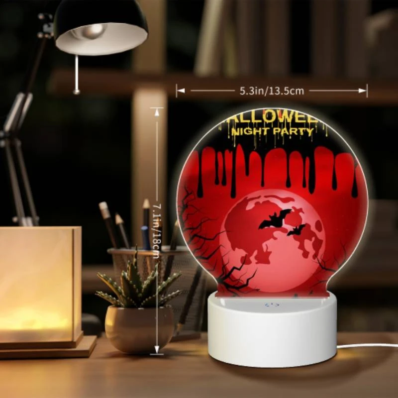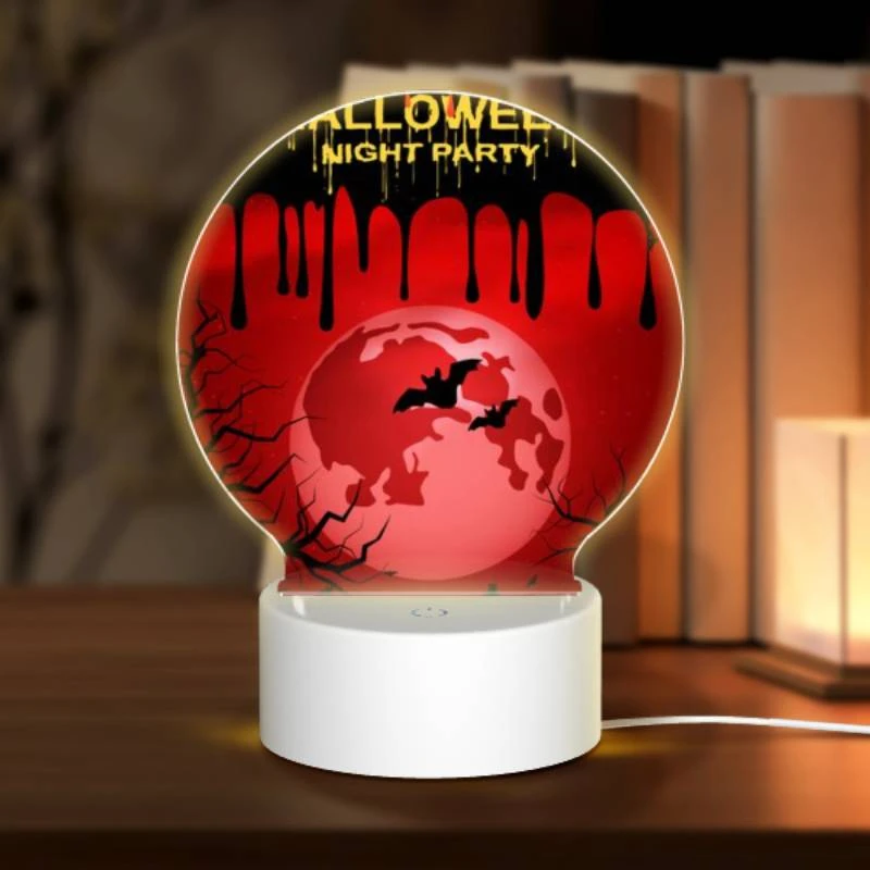 Be the first to review “Round Acrylic Night Light, A Halloween Night Party Poster With A Red Moon And Bats.” Cancel reply