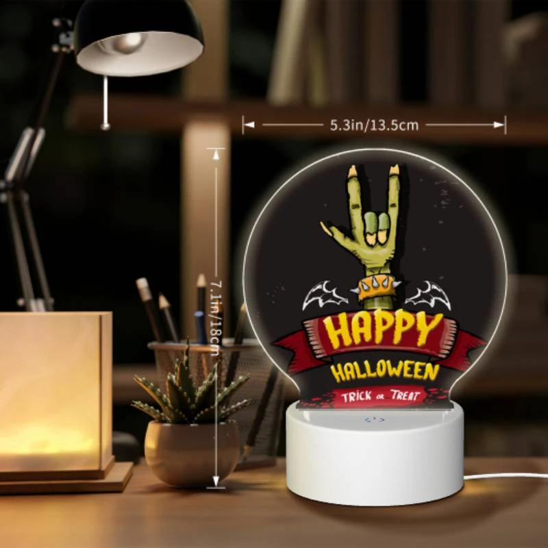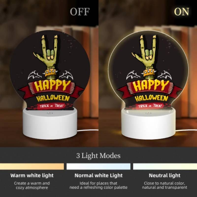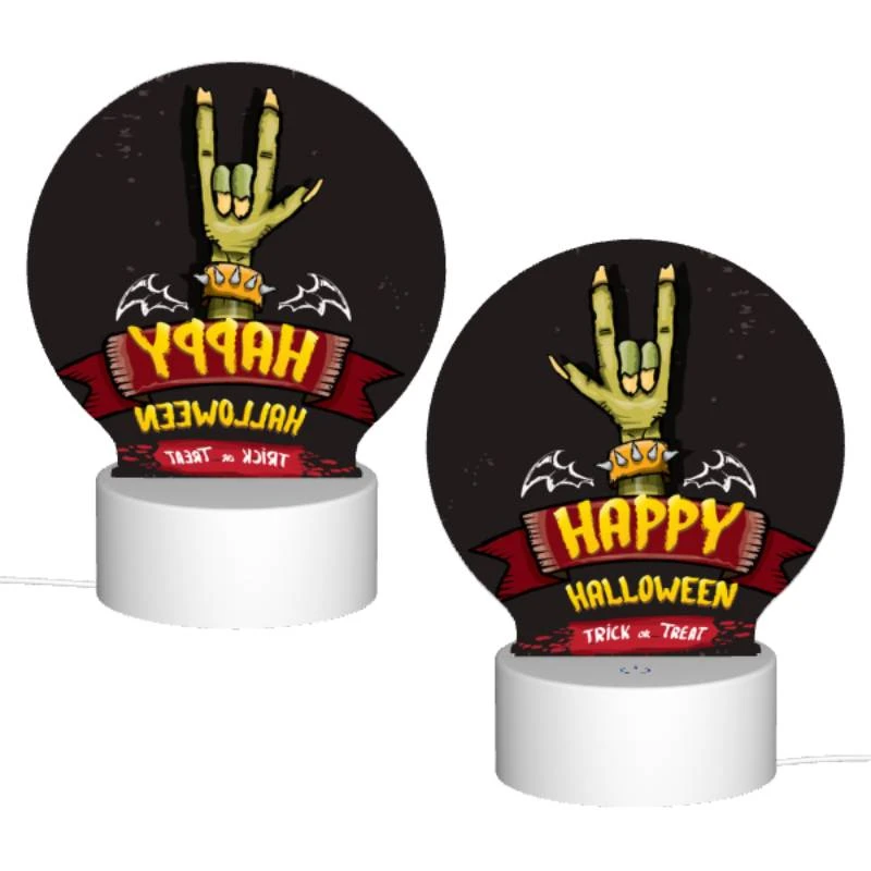 Round Acrylic Night Light, A Happy Halloween Sign With A Hand Giving The Middle Finger.