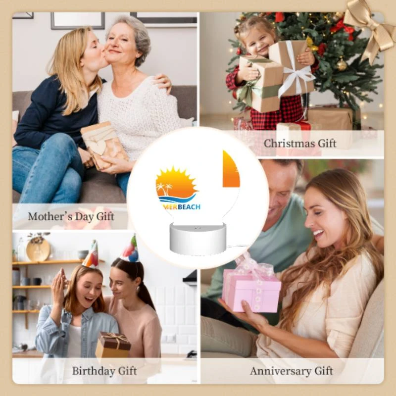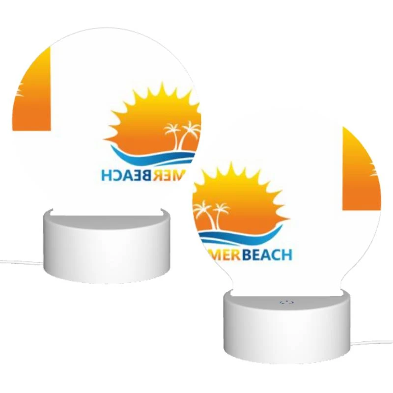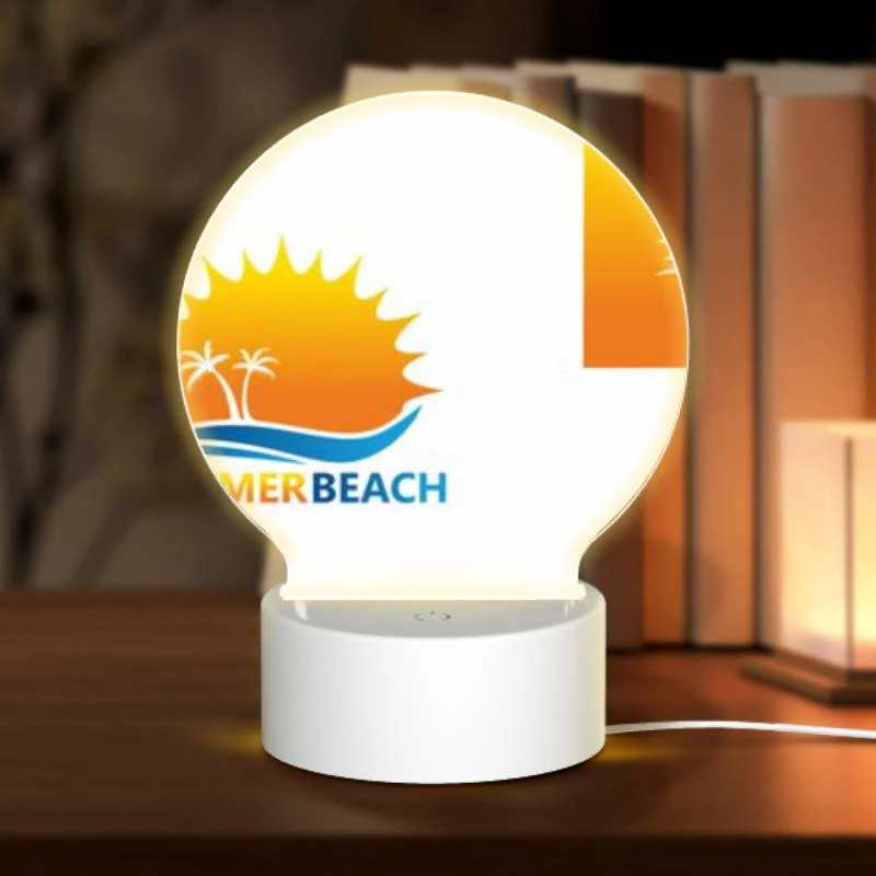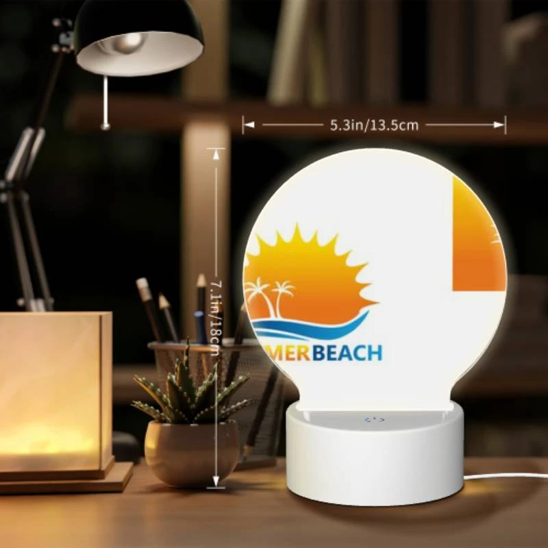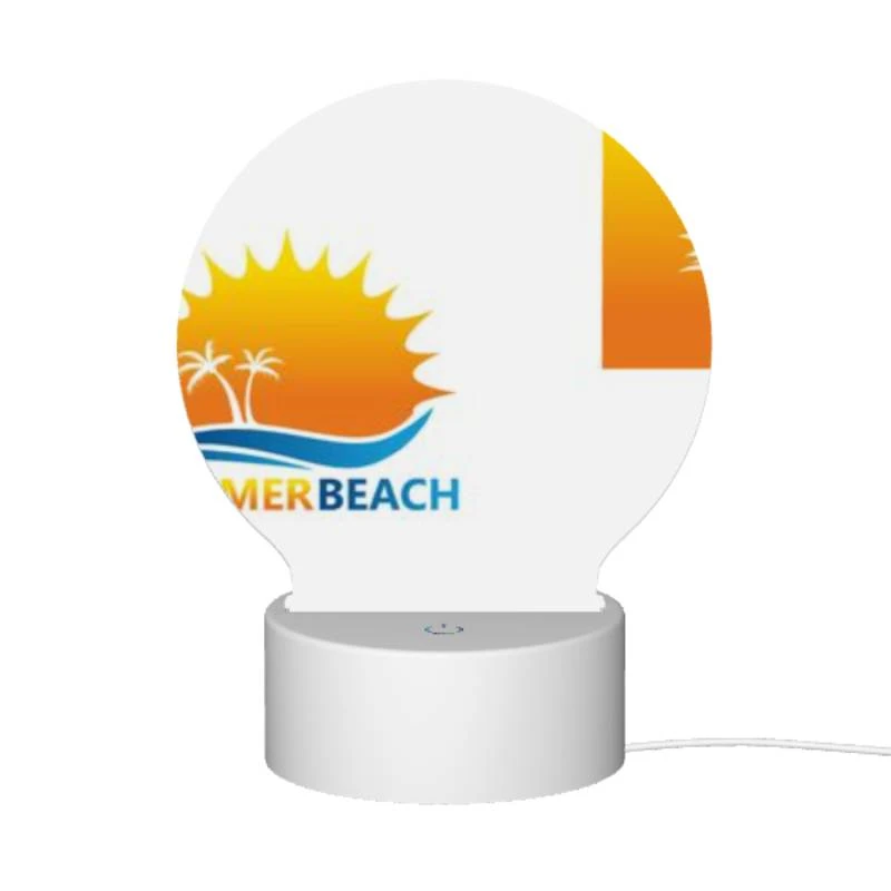 Round Acrylic Night Light, A Logo For A Beach With A Sun And Palm Trees.