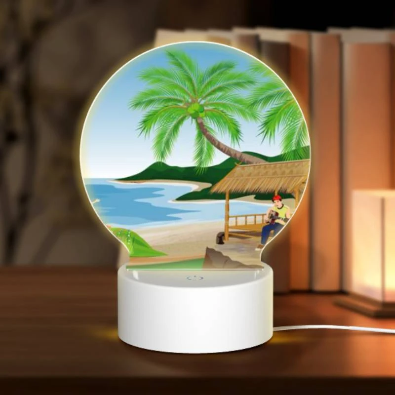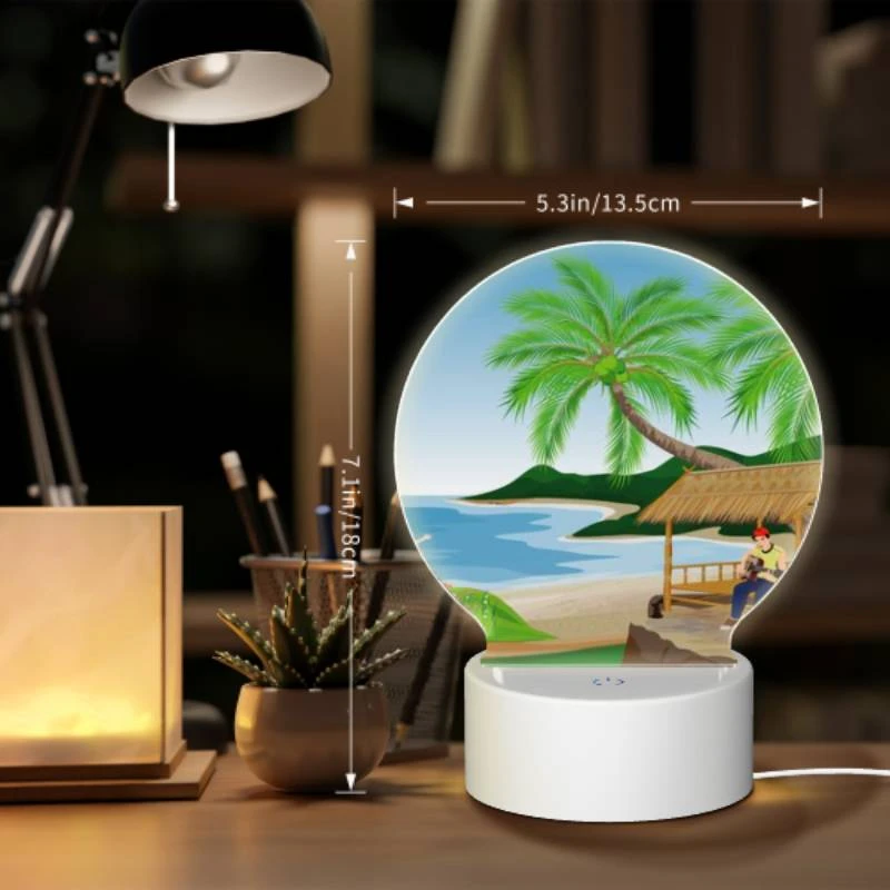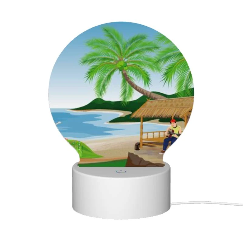 Round Acrylic Night Light, A Man Is Sitting Under A Palm Tree On A Beach. -Cute Night Light Shop 5fbdafba6ad0d0520d8e9f0a7840d2768e7f636b 121