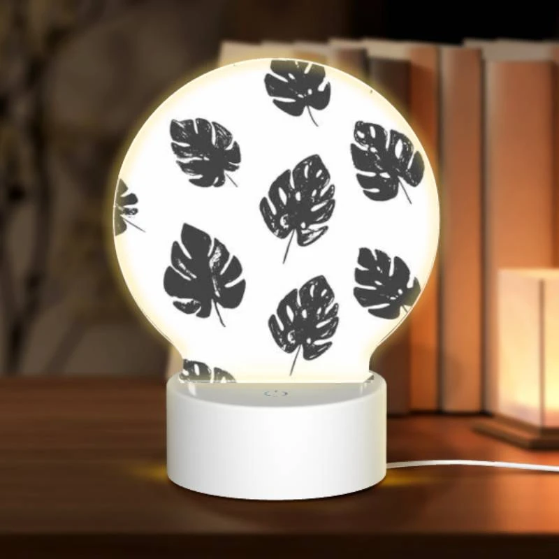 Round Acrylic Night Light, A Pattern Of Leaves On A White Background.