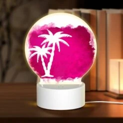 Round Acrylic Night Light, A Pink And White Palm Tree On A Pink Background.