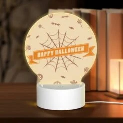 Round Acrylic Night Light, A Spooky Halloween Sign With A Spider Web And Bats.