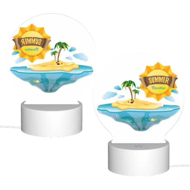 Round Acrylic Night Light, A Sunny Island With A Palm Tree And A Yellow Sun.
