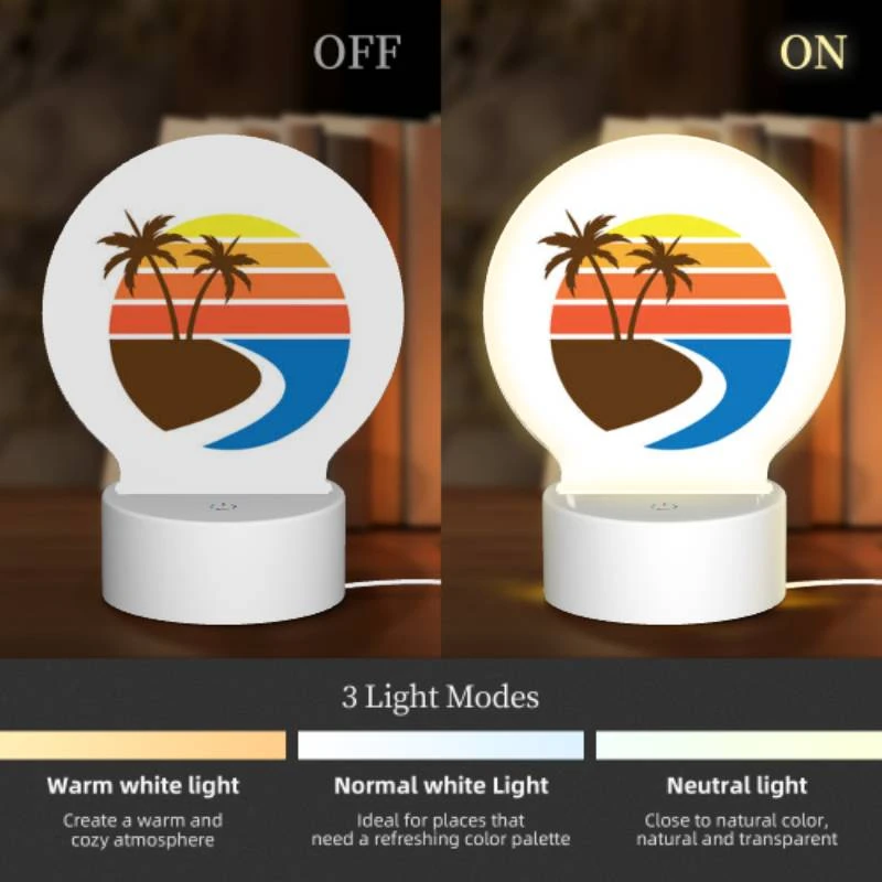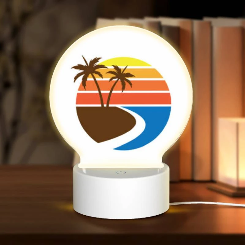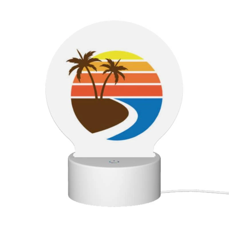 Round Acrylic Night Light, A Sunset With A Beach And Palm Trees.
