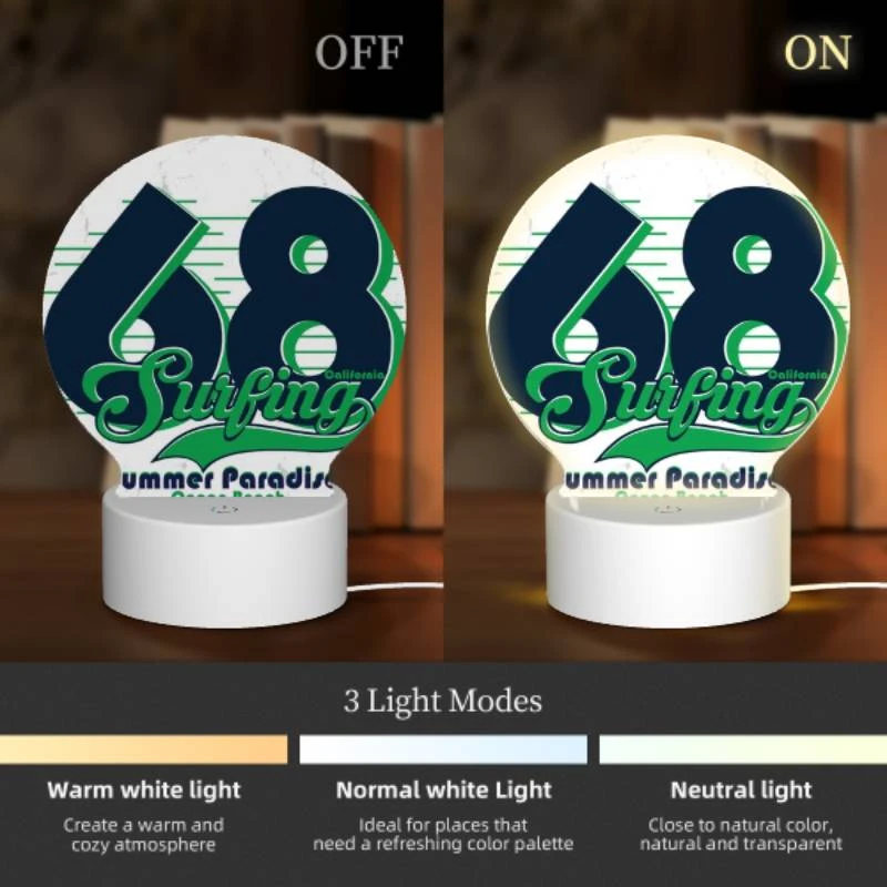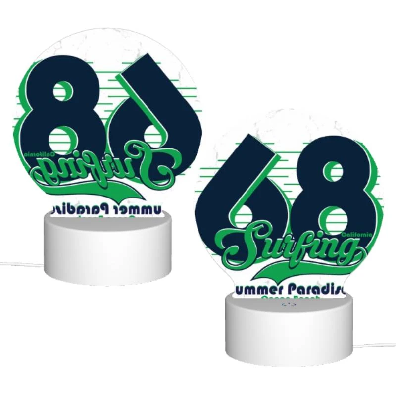 Round Acrylic Night Light, A Surfing Logo For The State Of California.