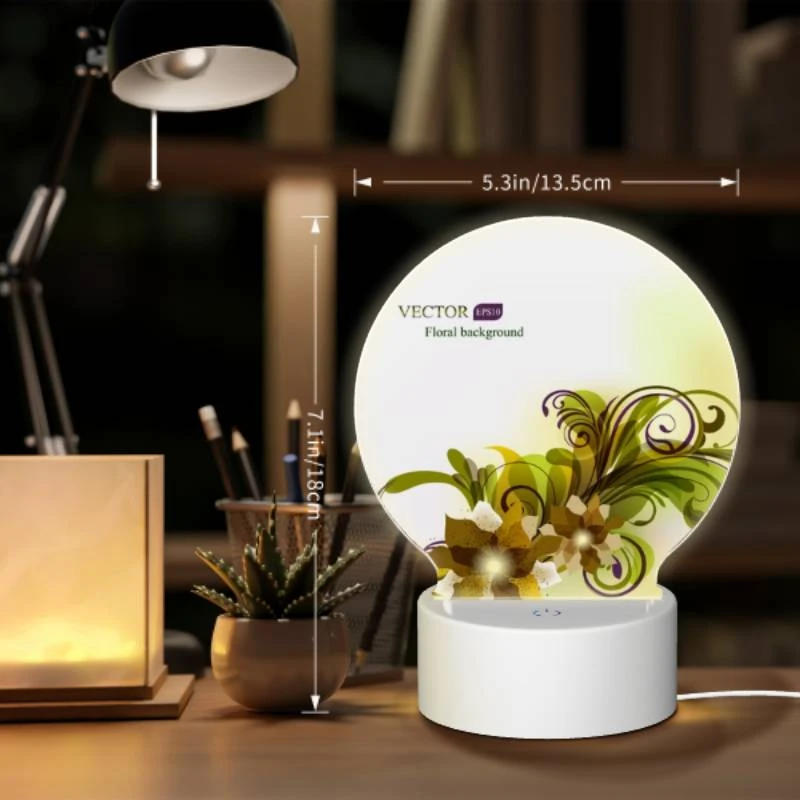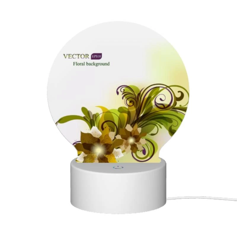 Round Acrylic Night Light, A Yellow And Green Floral Background.