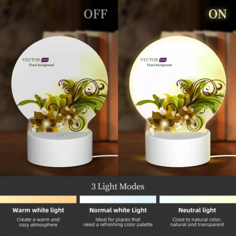 Round Acrylic Night Light, A Yellow And Green Floral Background. -Cute Night Light Shop 4fedebe4c7f577398f0d3589aaa74d020f59673f