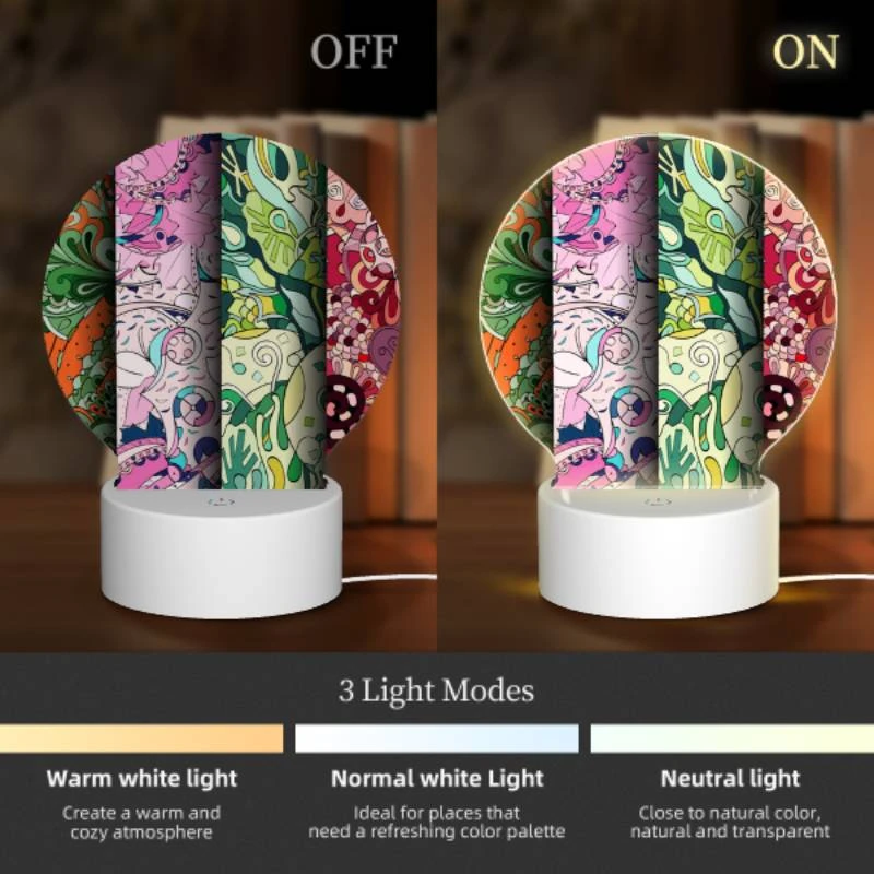 Round Acrylic Night Light, A Colorful Circle Of Flowers And Birds.