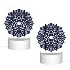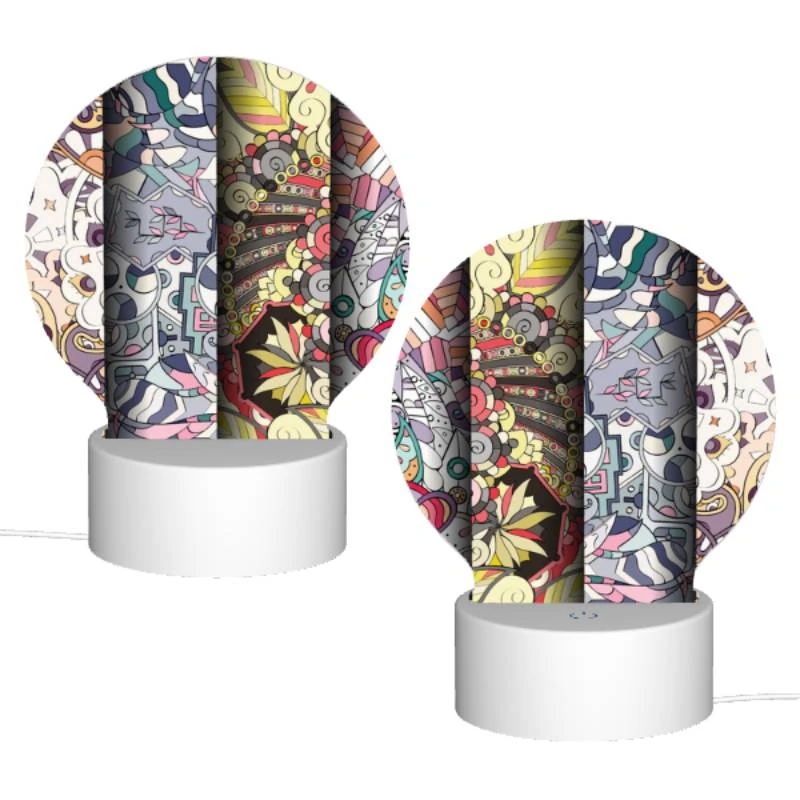 Round Acrylic Night Light, Three Colorful And Intricate Designs Are Displayed Side By Side.