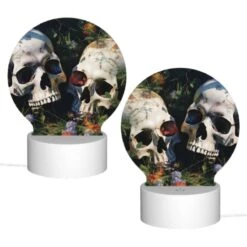 Round Acrylic Night Light, Two Skulls Are Sitting In The Grass