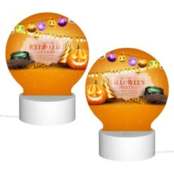Round Acrylic Night Light, A Halloween Party Sign Is Displayed On An Orange Background.
