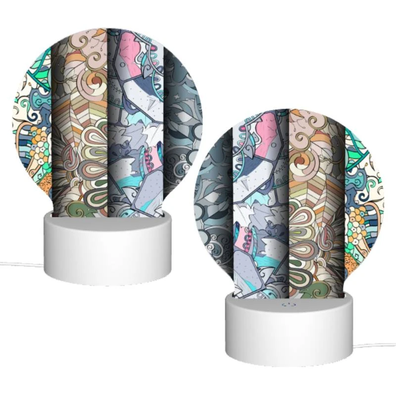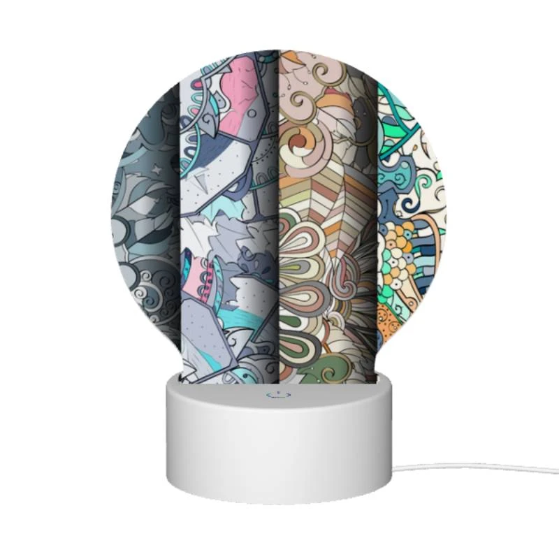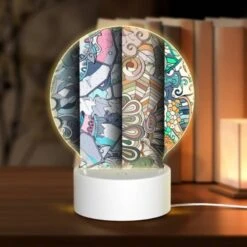 Round Acrylic Night Light, Three Different Colored Paintings Of Waves.